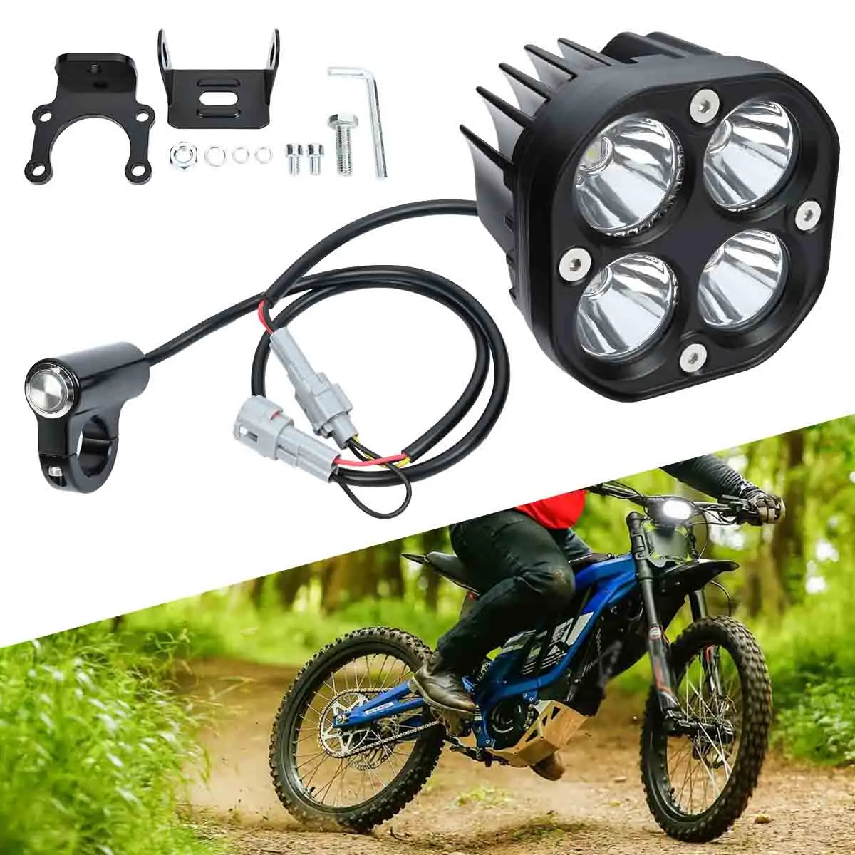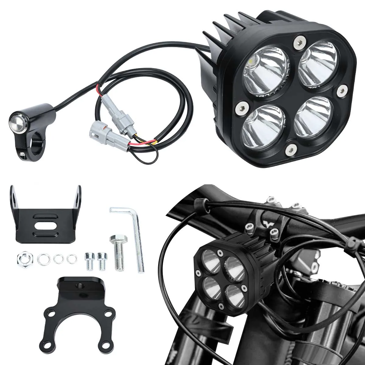 סט פנס קדמי לאופנוע עם מתג, תאורת LED בהירה בצבע לבן, מתאים ל-Sur-Ron Ultra Bee – Segway Off-Road