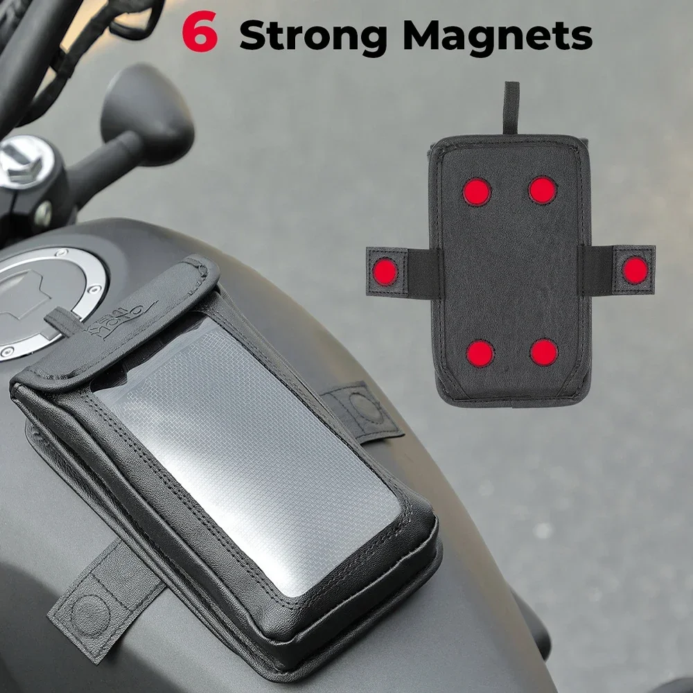 תיק מגנטי לאופנוע עמיד למים מעור עם מסך מגע לטלפונים בגודל 6.9 אינץ'