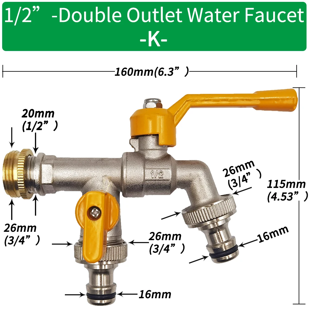 ברז מים דו ראשי לבית לחצר עם ברז כפול זווית 90 מעלות, יחידה/כפולה, מתאים למכונת הכביסה ולעוד מגוון שימושים בחצר